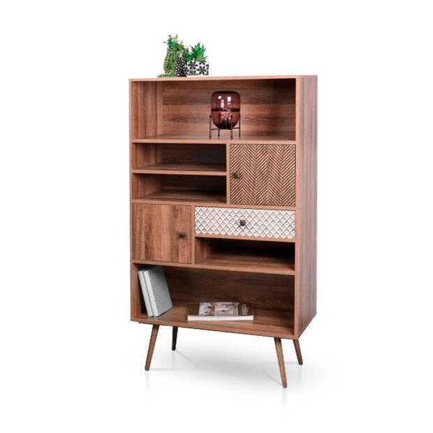 A sua construção inteligente permite maximizar o espaço disponível enquanto valoriza o ambiente. Esta estante combina naturalmente com diferentes estilos de decoração, oferecendo uma solução versátil e de fácil integração.