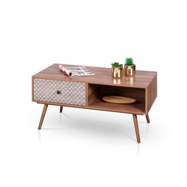 A Mesa de Centro Baobab FR destaca-se pelo design moderno e funcional, com estrutura em madeira natural que confere um aspeto cálido e acolhedor. As suas linhas retas e robustez garantem estabilidade e durabilidade.