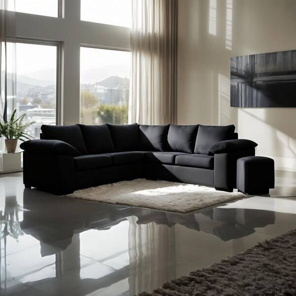 O Sofá-Canto Berlim alia design moderno a uma funcionalidade robusta, ideal para quem deseja conforto e estilo num único móvel. Disponível nas cores preto e cinza, destaca-se pelos braços mais altos, equipados com almofadas que oferecem apoio adicional para recurrentes momentos de relaxamento.