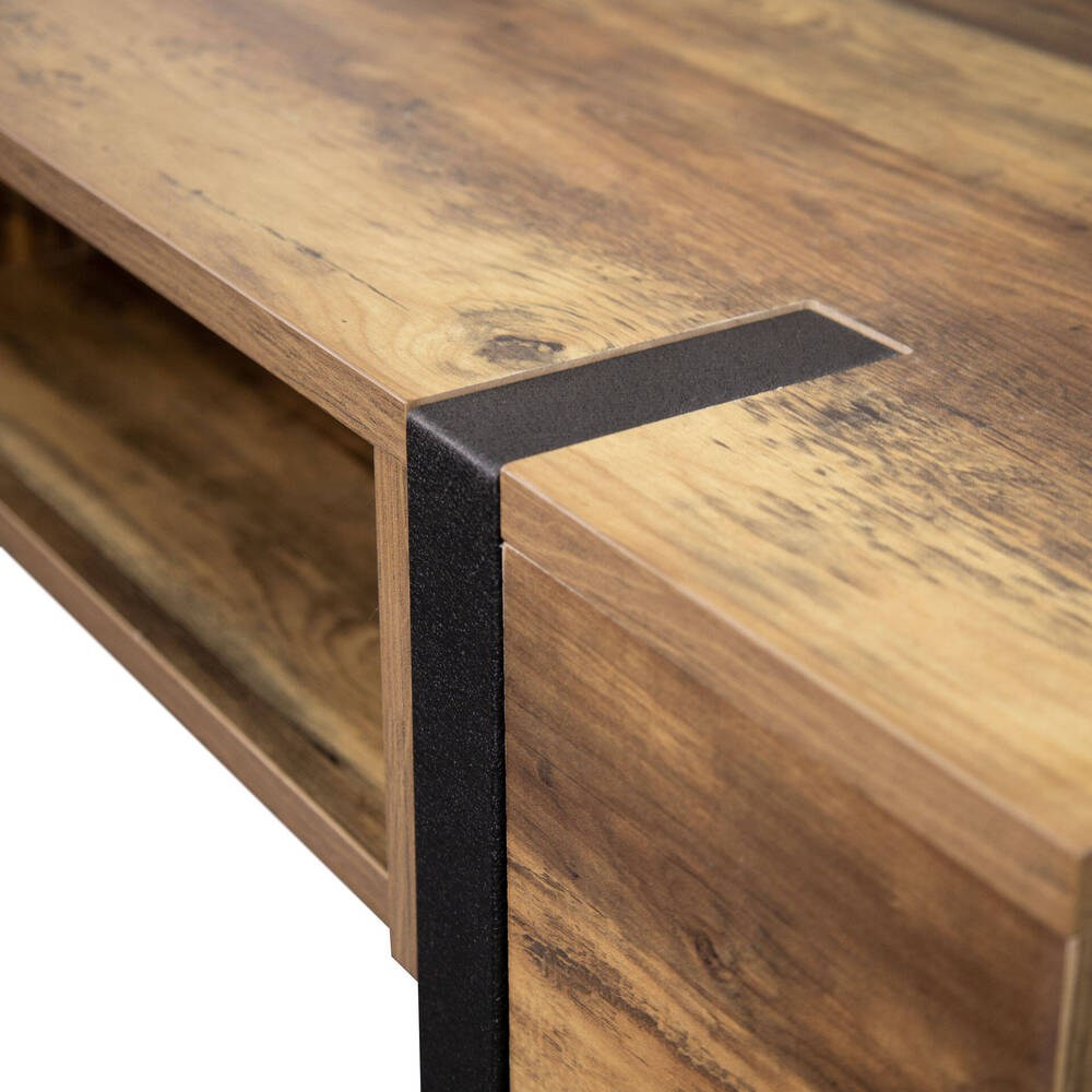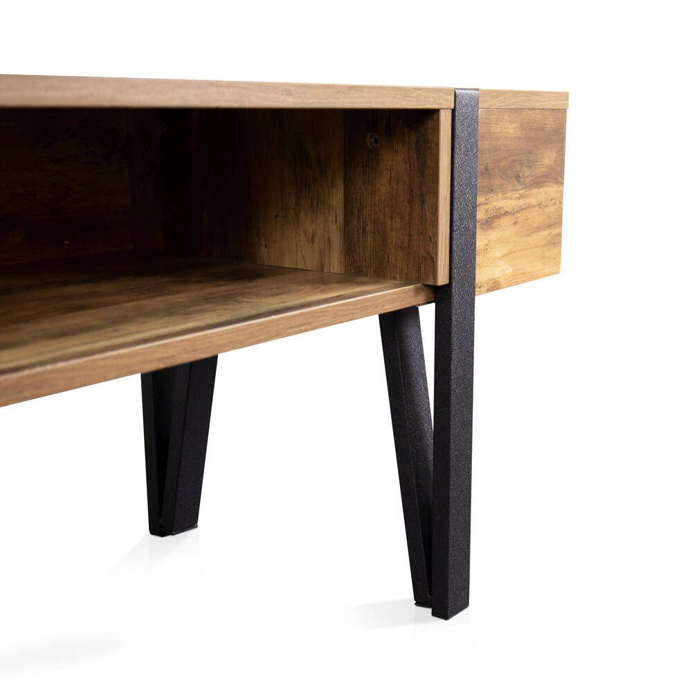 A Base de TV Brams é uma peça de mobiliário moderna e funcional, concebida para oferecer uma solução elegante e prática na organização da sua área de entretenimento. O seu design inteligente incorpora espaços de armazenamento adicionais, como uma prateleira e uma gaveta, ideais para guardar dispositivos eletrónicos, cabos e outros objetos essenciais, mantendo tudo arrumado e acessível.