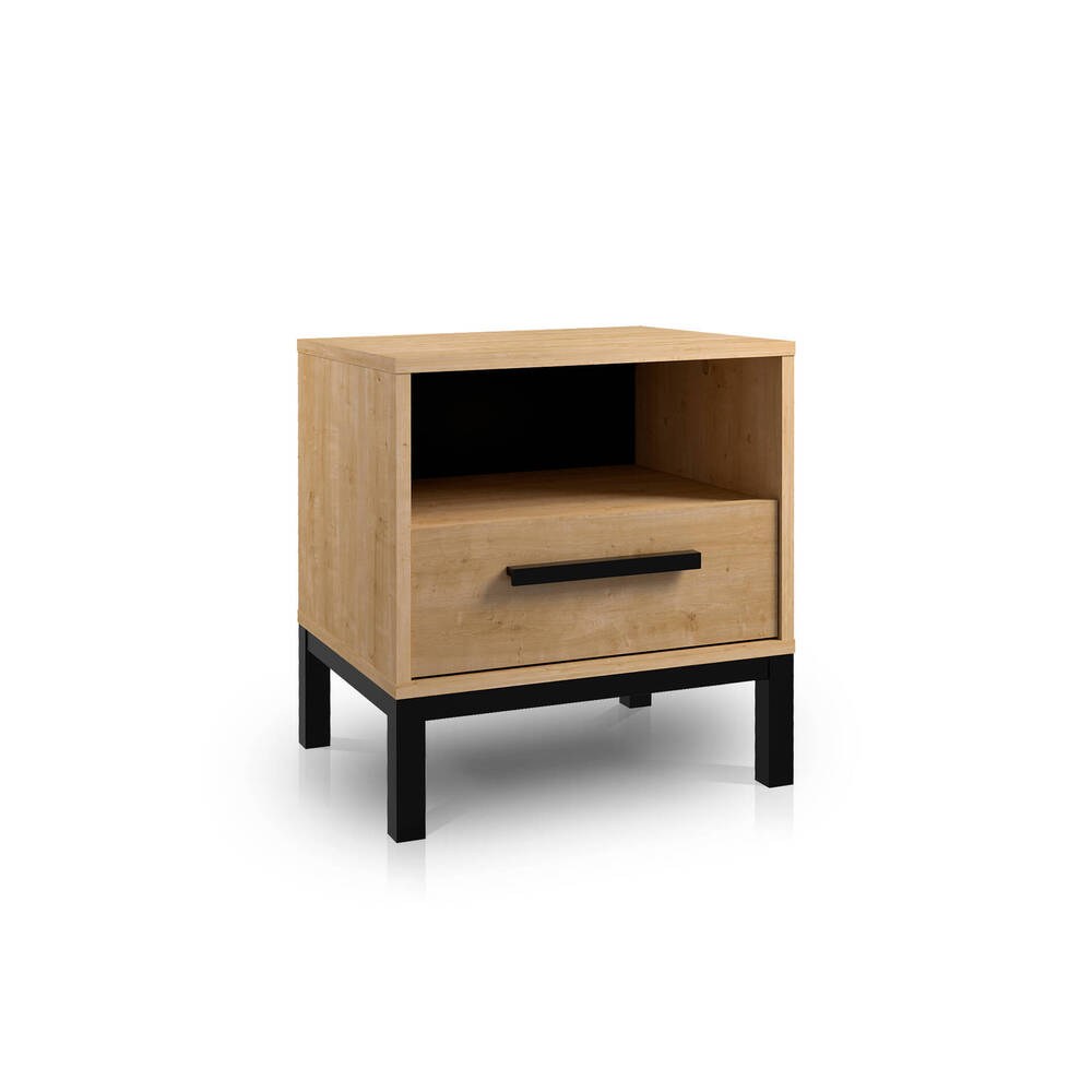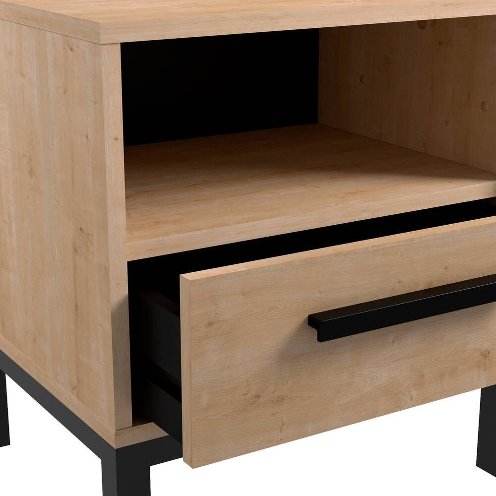 A mesa de cabeceira Craft JR destaca-se pelo seu design simples e funcional, combinando estética e praticidade. Conta com uma gaveta espaçosa que permite organizar facilmente os seus objetos pessoais, enquanto o compartimento aberto facilita o acesso rápido a itens que utiliza com frequência.