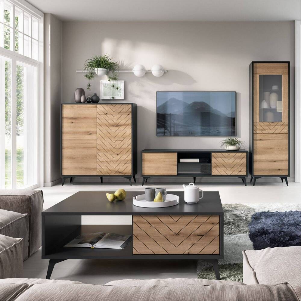 Inclui uma porta com painel de vidro que permite a exposição discreta do interior, aliando funcionalidade e sofisticação. É uma vitrine moderna, versátil e de fácil integração na decoração.