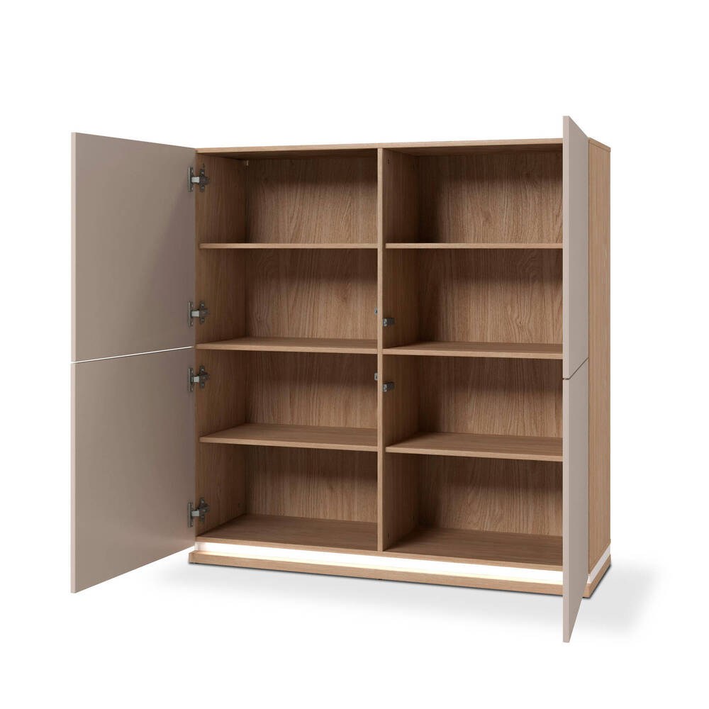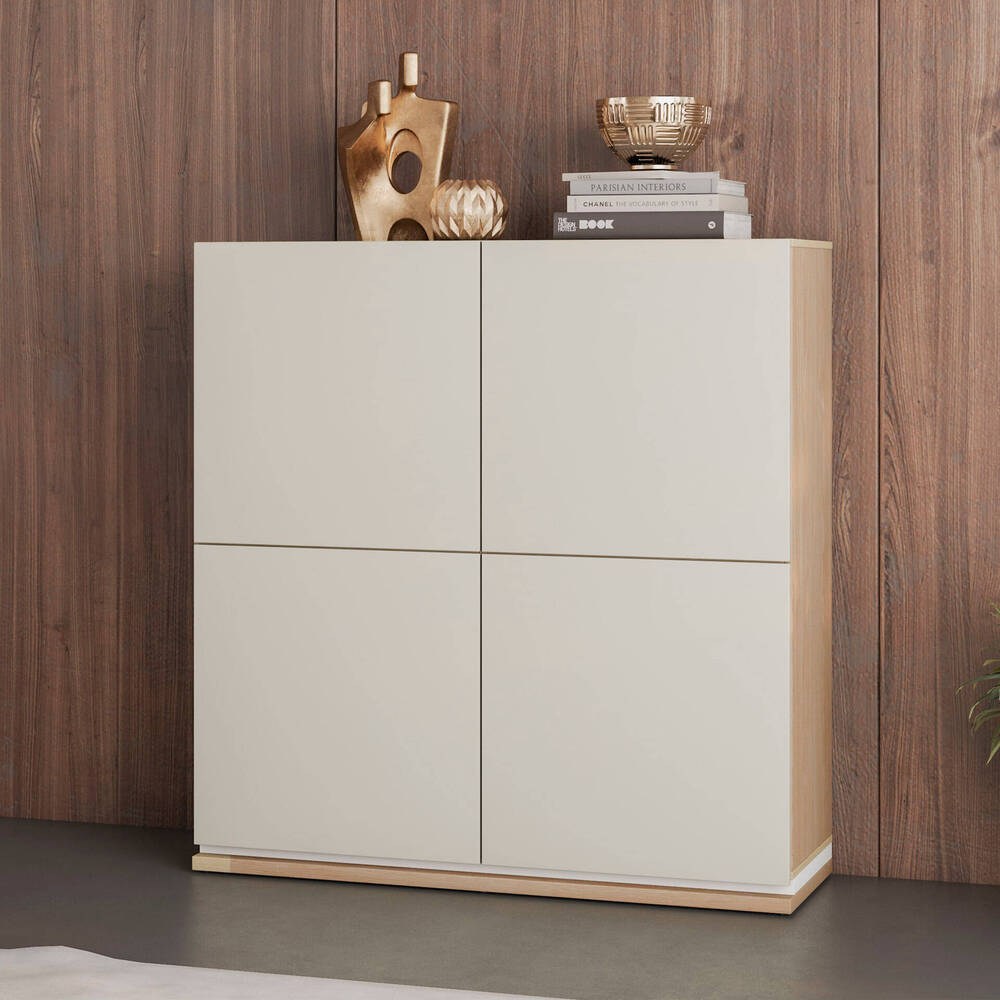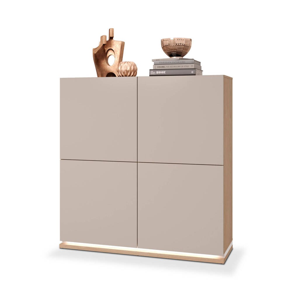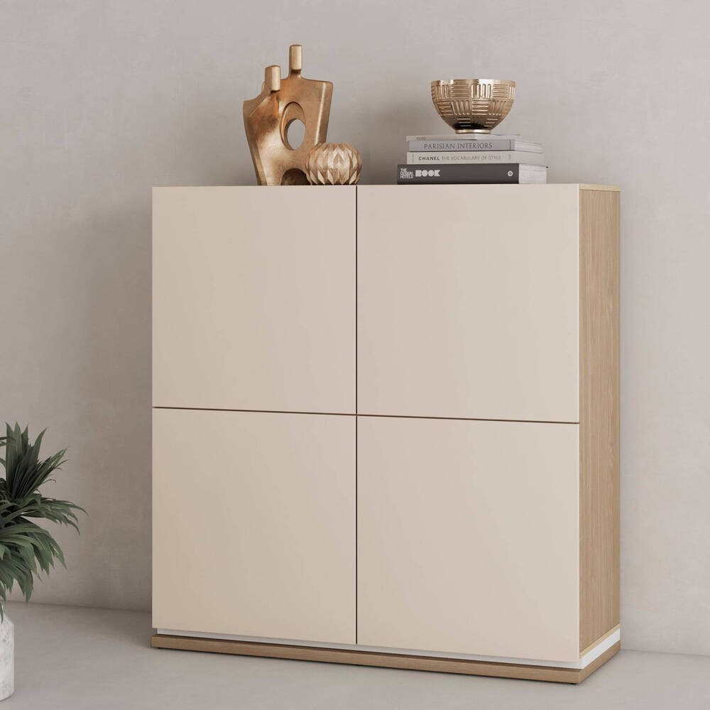 O aparador Dore distingue-se por um design contemporâneo de linhas sóbrias e bem definidas. A composição das portas valoriza a simetria e a continuidade visual, reforçando uma sensação de ordem e harmonia no espaço.