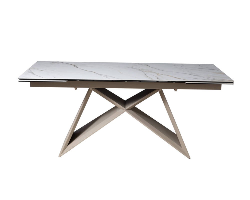 A Mesa de Jantar J02 CLGC destaca-se pela combinação entre sofisticação e desenho estrutural. O tampo retangular apresenta padrão marmorizado em tons claros, que acrescenta textura e elegância à superfície.