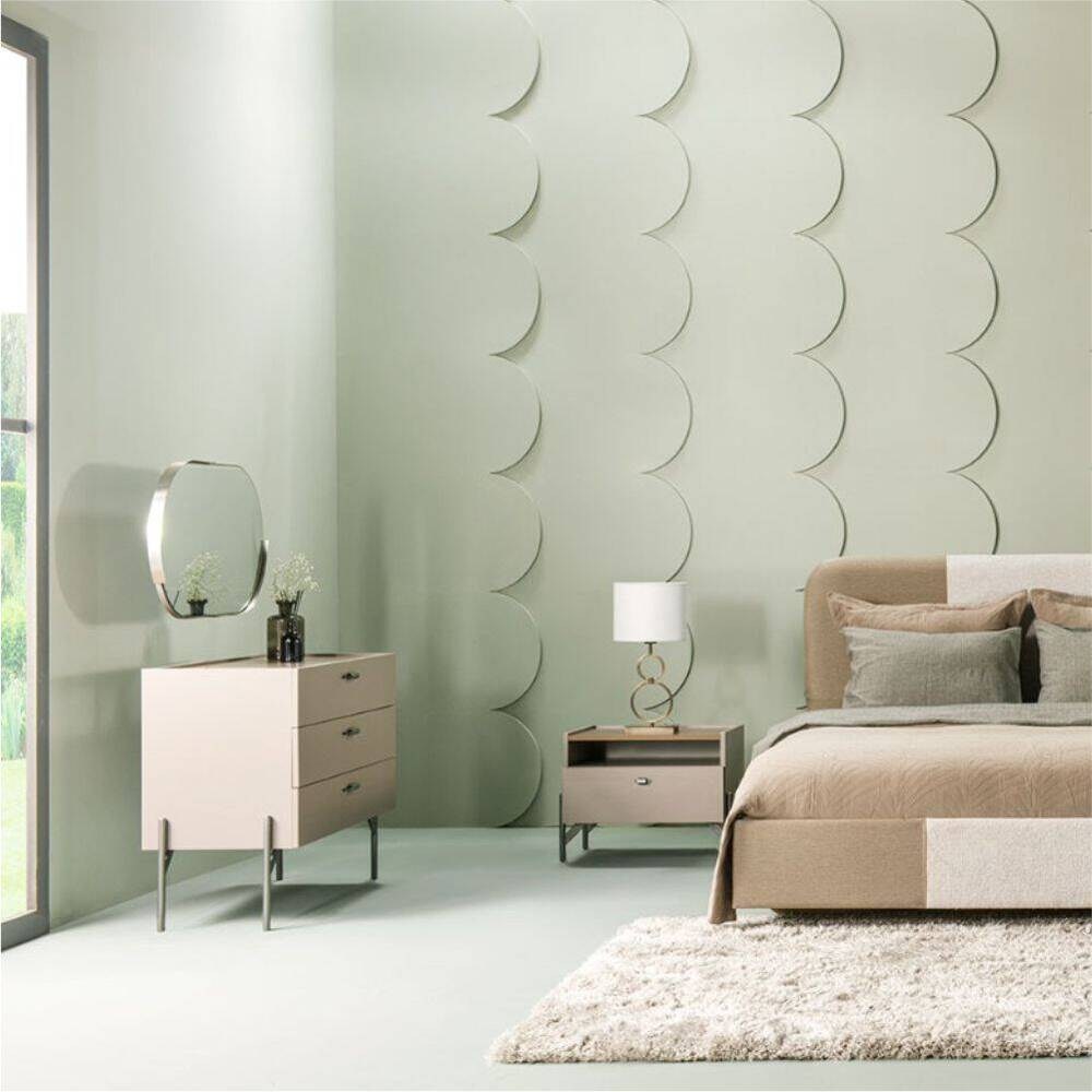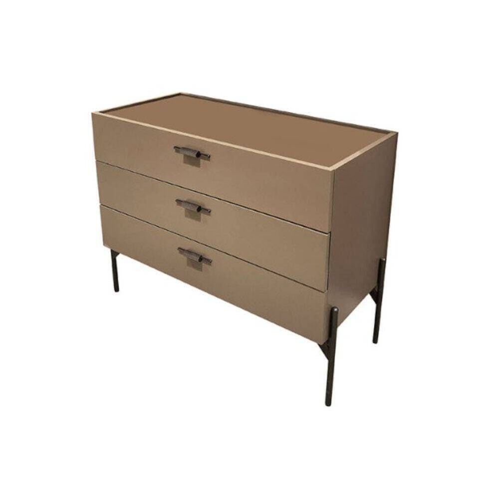 A Cómoda Lavita KI destaca-se pelo seu design contemporâneo e pela cor neutra, que se integra facilmente em diversos estilos de decoração. Equipado com três gavetas amplas, oferece um sistema de arrumação versátil para roupa, têxteis ou outros objetos do dia a dia, mantendo o ambiente organizado e harmonioso.