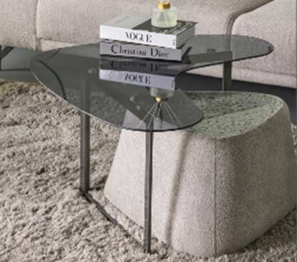 Com design contemporâneo, a Mesa de Centro LAVITA destaca-se pelo tampo em vidro fumado com um formato orgânico que se aproxima de um coração, criando uma silhueta suave e distinta na zona de estar. A estrutura metálica fina reforça a leveza visual da peça e complementa o desenho fluido do tampo.