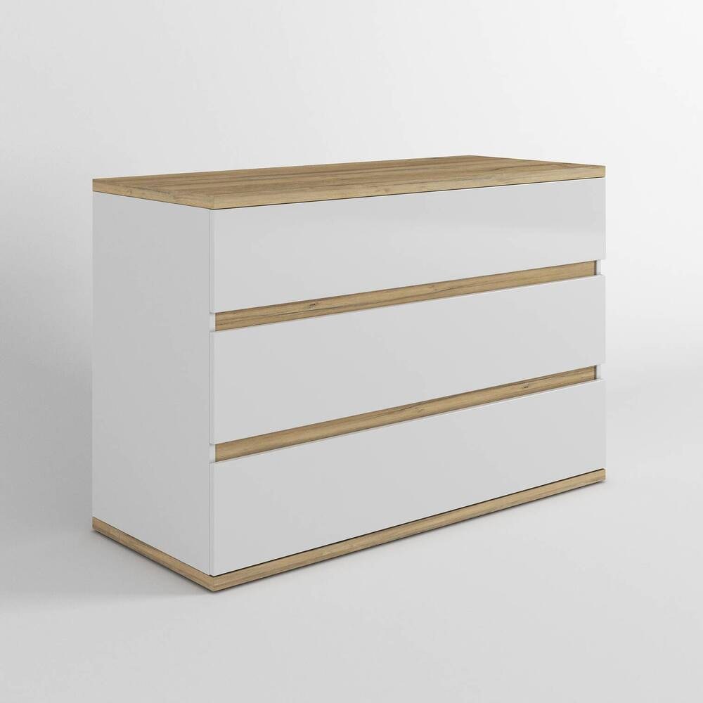 Comoda de 3 Gavetas - Alto brilho branco laqueado e "Grandson" Carvalho