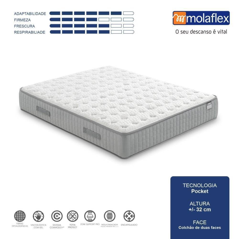 O colchão Gravity Pocket da Molaflex destaca-se pelo suporte individualizado das molas ensacadas Pocket Spring Pro, que garantem conforto e respirabilidade optimizada.