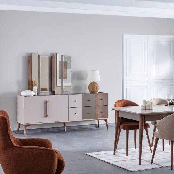 O Pastel evidencia um acabamento harmonioso que combina diferentes tons terrosos, resultando num móvel que aporta sofisticação e valoriza a decoração. É uma excelente escolha para quem procura funcionalidade aliada a um design elegante.