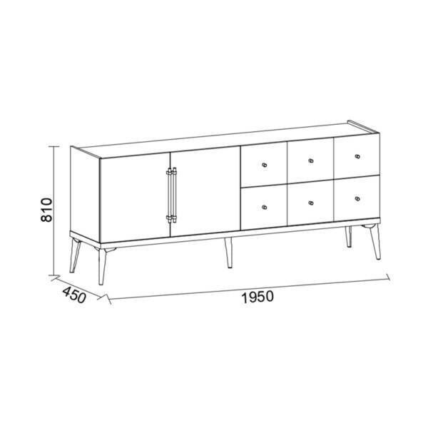 Os pés, em tom de carvalho, proporcionam estabilidade e realçam a leveza visual do aparador. O Pastel é uma excelente escolha para quem procura funcionalidade aliada a um design elegante.