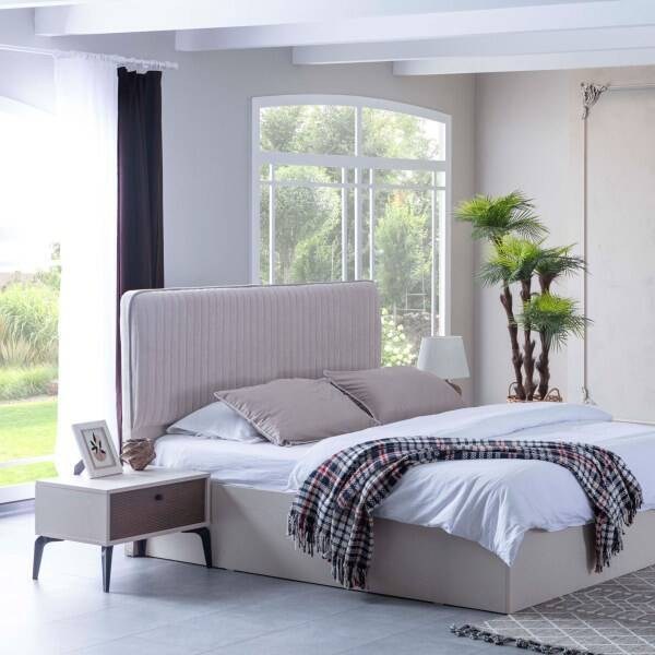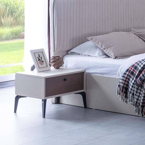 A Mesa de Cabeceira Piedra KI destaca-se pelo design minimalista e funcional, com frente ranhurada que acrescenta textura e charme subtil ao visual. A gaveta desliza suavemente em trilhos com parada, proporcionando arrumação prática e organizada para objetos pessoais.