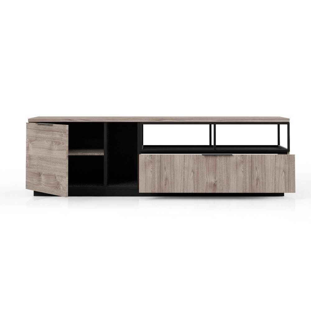 Equipado com uma gaveta central, uma porta lateral e uma prateleira, oferece espaço funcional para organizar dispositivos e acessórios. O acabamento em tons neutros permite fácil integração em diversos estilos de decoração.