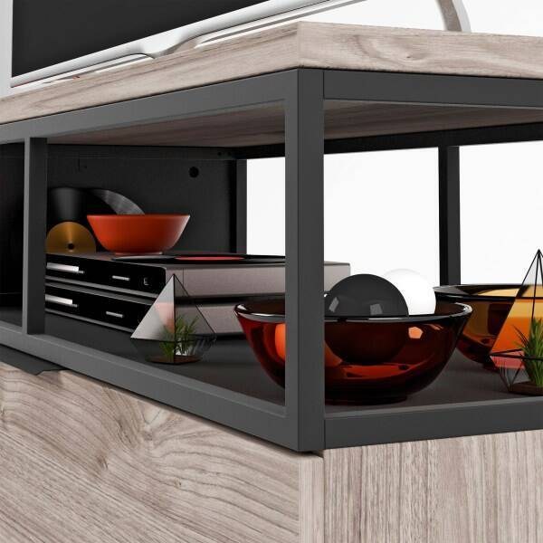 A Base TV Snapp SC alia design moderno e funcionalidade. Com porta lateral, gaveta e prateleira aberta, oferece arrumação prática num acabamento neutro que combina com vários estilos.