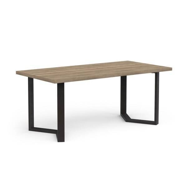 Com um design contemporâneo e elegante, a Stout destaca-se pelo tampo de aspeto natural, que valoriza a textura e a cor da madeira. A estrutura assenta em pernas distintas e modernas, com acabamento preto, conferindo estabilidade e um visual sóbrio.