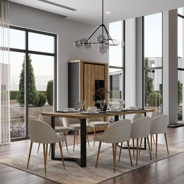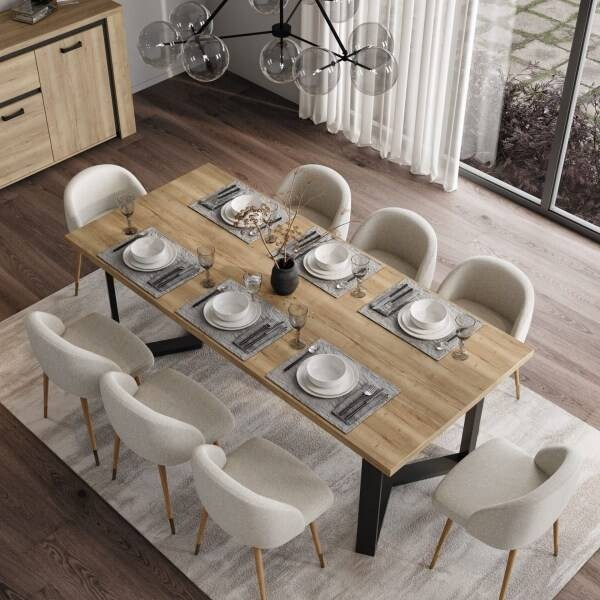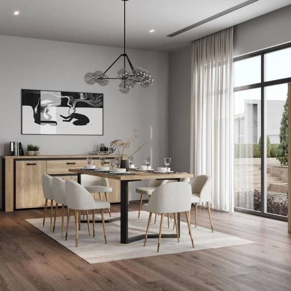 As linhas simples e bem definidas tornam esta mesa uma peça versátil, que se integra facilmente em diferentes estilos de decoração, transformando a sala de jantar num espaço acolhedor e moderno, onde funcionalidade se conjuga com uma estética cuidada.