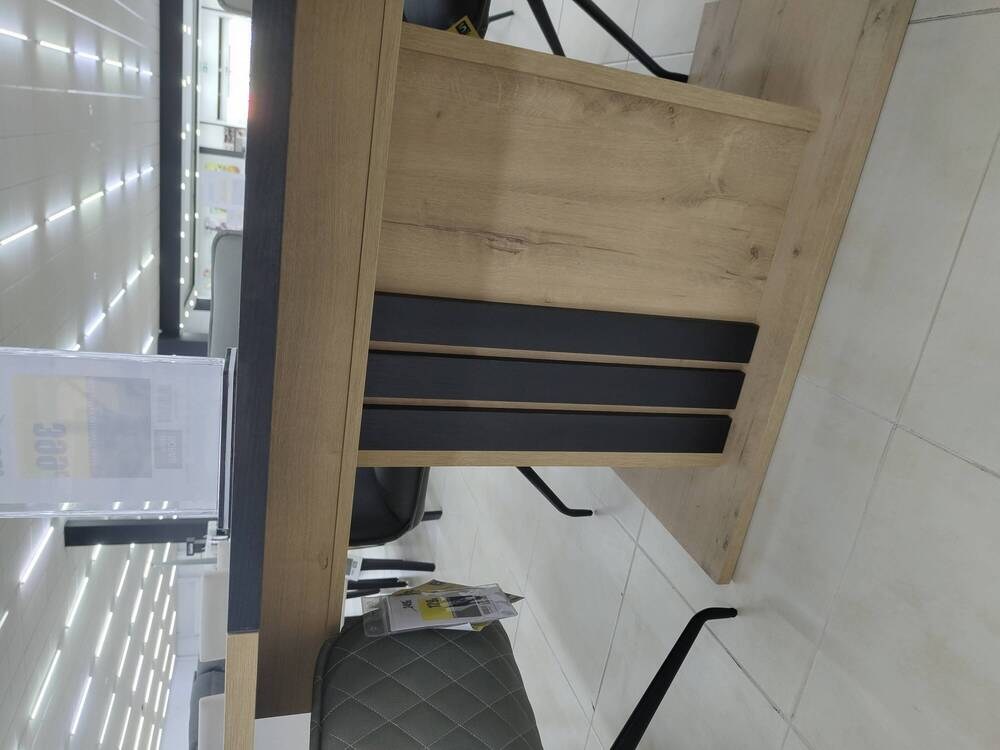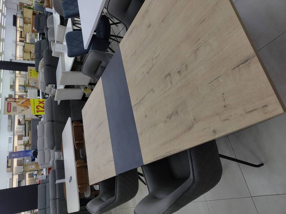 Com design contemporâneo e presença marcante, a Mesa de Jantar SWEET destaca-se pelo tampo castanho combinado com uma base escura com detalhe ripado lateral. A função extensível integra um tampo adicional escuro no centro, permitindo ampliar a superfície de forma prática e mantendo a harmonia visual.