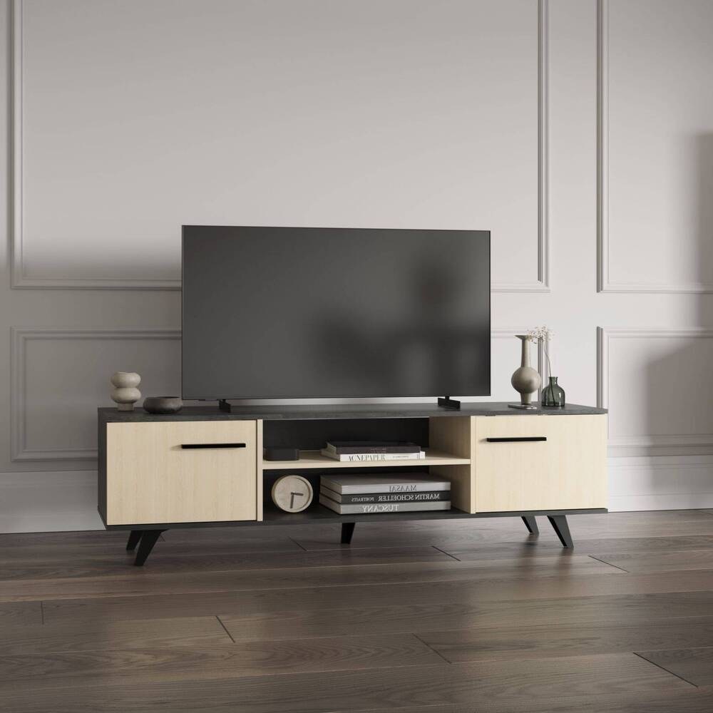A Base de TV Kent destaca-se pelo design moderno e funcionalidade, tornando-se uma peça essencial para quem pretende organizar e valorizar o espaço de entretenimento. Equipado com gavetas espaçosas e várias prateleiras, oferece múltiplas opções de arrumação para dispositivos eletrónicos, livros ou objetos decorativos, mantendo o ambiente sempre arrumado e acessível.