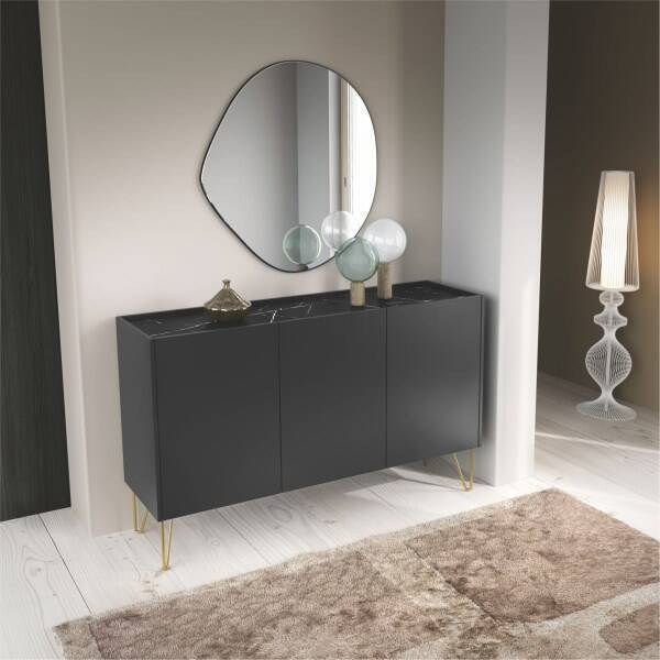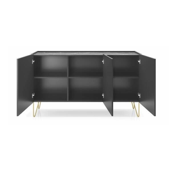 Elegância e funcionalidade unem-se nesta peça que se destaca pelo design sóbrio e moderno. A estrutura em tons de grafite confere uma presença discreta, enquanto os pés dourados adicionam um toque de sofisticação, elevando o estilo de qualquer espaço.