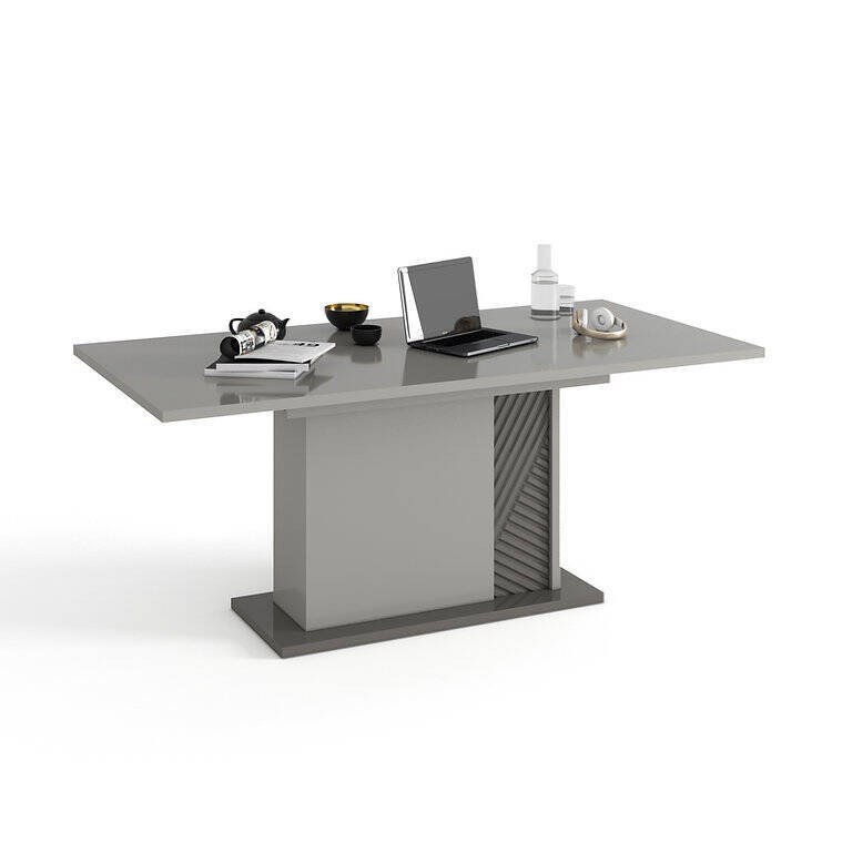 A Mesa de Jantar JANE 0709 aposta numa estética contemporânea e refinada. O tampo cinza brilhante confere leveza visual e sofisticação, funcionando como superfície ampla e uniforme para refeições e encontros.