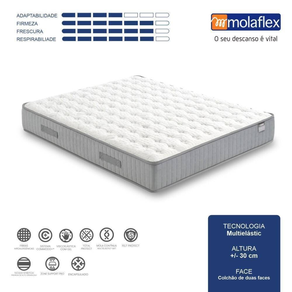 O Mystic Multi da Molaflex combina firmeza e conforto com tecnologia avançada. Com um núcleo de molas contínuas Multielástic, integra o sistema Zone Support Pro, concebido para oferecer uma experiência de descanso superior.