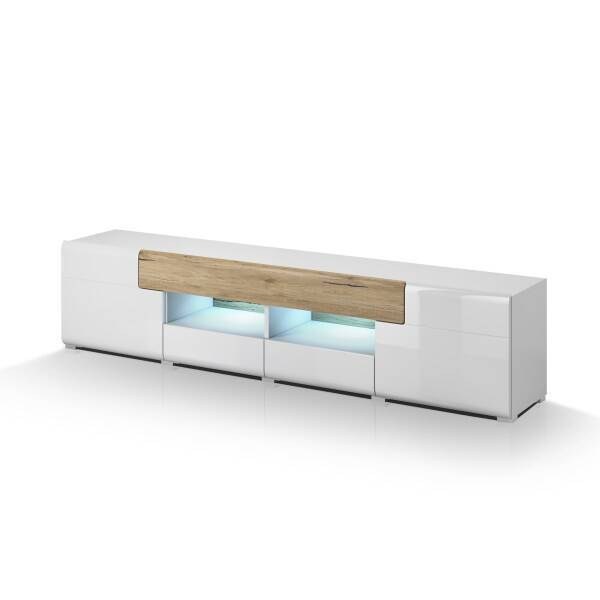 O seu design limpo e estruturado destaca-se pela presença de duas gavetas espaçosas, ideais para guardar objetos do dia a dia de forma prática. As linhas retas e a ausência de puxadores visíveis reforçam a estética minimalista, criando um ambiente mais organizado e harmonioso.